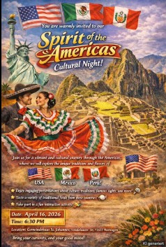 Experience the rich diversity, traditions, and flavors of these countries during an evening filled with delicious food, interactive cultural activities, and fascinating insights into everyday life. Whether you’re excited to try authentic dishes or simply want to enjoy a warm and welcoming atmosphere, this event offers a unique opportunity to experience a vibrant taste of the Americas.