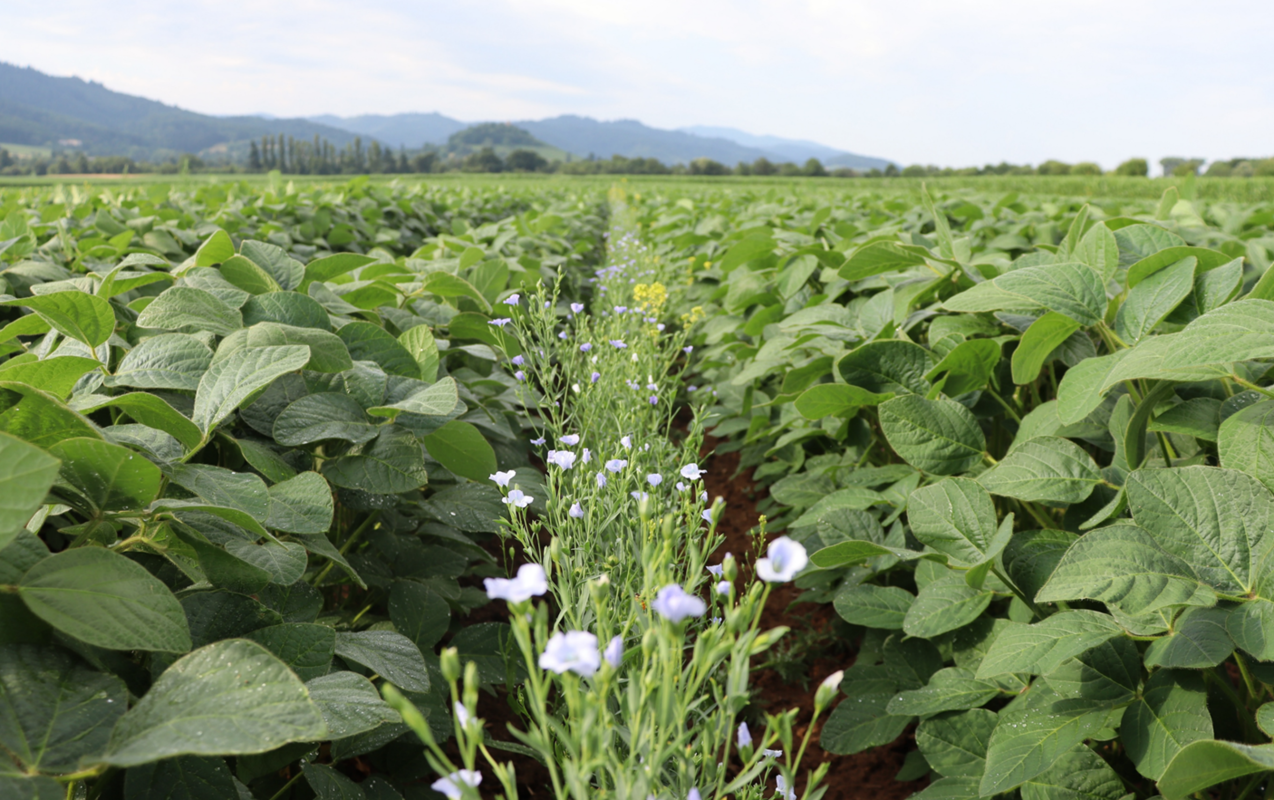 Zugleich bringt der Sojaanbau einige Herausforderungen mit sich: Aufgrund der späten Aussaat, der weiten Reihenabstände und der langsamen Jugendentwicklung ist die Kultur anfällig für Erosion. Blühende Untersaaten können hier einen wichtigen Beitrag leisten, indem sie den Boden schützen und das Erosionsrisiko verringern.