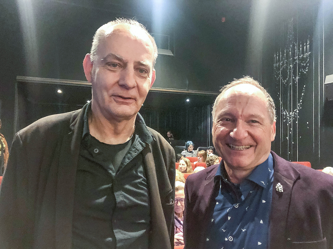 Der Filmemacher Andreas Hett (links) und HfWU-Dekan Prof. Johannes Junker im Kino Traumpalast. (Foto:HfWUrenner)