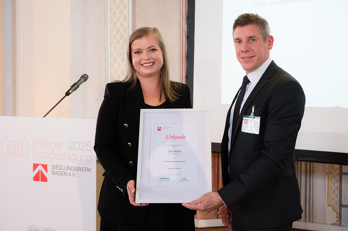 In diesem Jahr wurde Kyra Eggstein, Studierende der Immobilienwirtschaft an der Hochschule für Wirtschaft und Umwelt Nürtingen-Geislingen (HfWU), mit dem Thomas-Aschenbrenner-Preis 2025 ausgezeichnet.