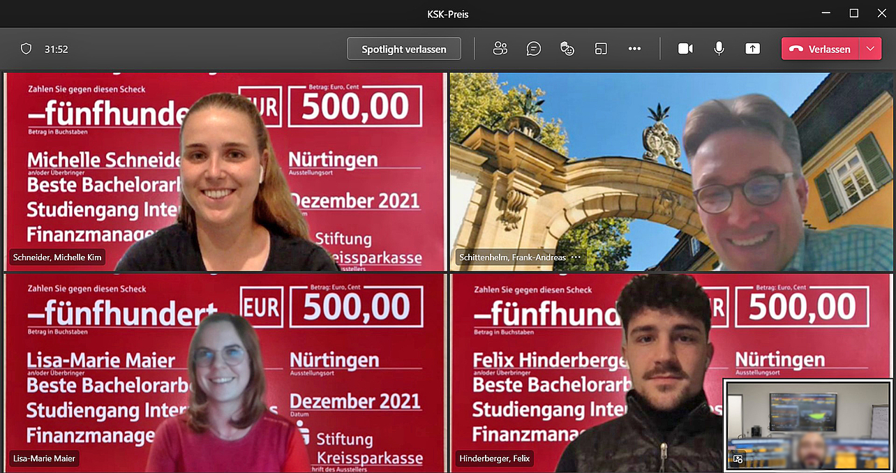 Im Studiengang Internationales Finanzmanagement (B.Sc.) werden regelmäßig herausragende Leistungen gewürdigt. Mit verschiedenen Preisen ehren wir Absolvent:innen sowie Studierende, die sich durch exzellente akademische Ergebnisse oder besonderes Engagement ausgezeichnet haben.